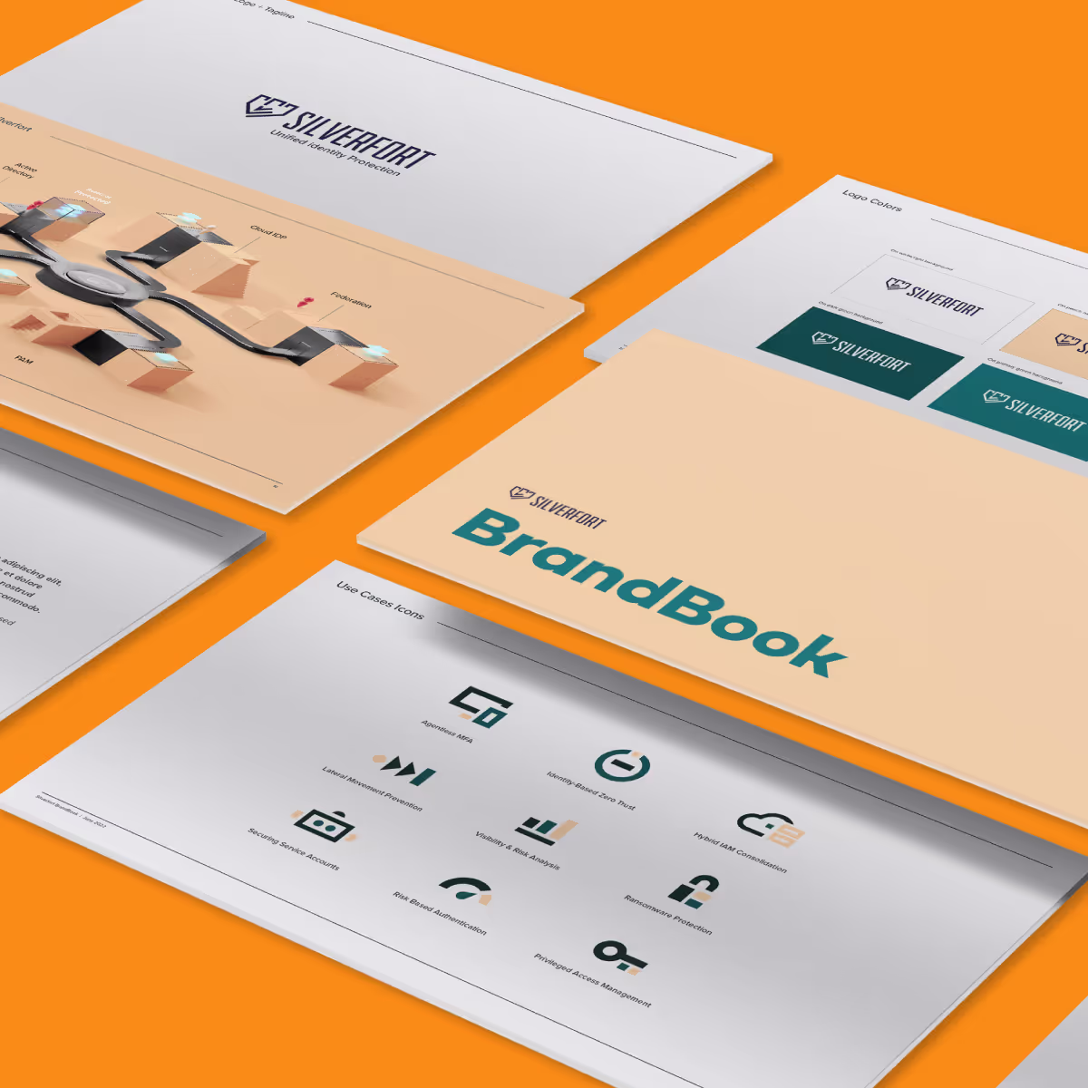 Silverfort is a dynamic cybersecurity company that embodies a modern yet resilient brand identity, utilizing a distinctive color palette of peach and green. The grunge texture in their design reflects the robust and tested nature of their security solutions, symbolizing their commitment to providing reliable protection against evolving cyber threats. This thoughtful blend of aesthetics and messaging positions Silverfort as a trusted partner in safeguarding digital assets, appealing to organizations seeking effective and dependable security measures. The very unique color palette was very distinctive where most security companies focus in the white, blue or red color space.